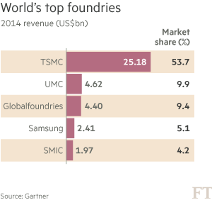 Gartner預(yù)計,受智能手機(jī)市場的帶動,芯片代工市場規(guī)模將由2014年的470億美元增加到2019年的620億美元,年均復(fù)合增長率達(dá)5.6%,超過同期半導(dǎo)體市場的3.3%年均增長率。