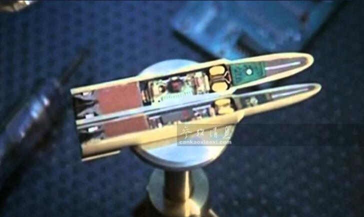 圖為“精確制導(dǎo)子彈”的實(shí)際剖面截圖,可見與傳統(tǒng)子彈的結(jié)構(gòu)截然不同,可見微型彈道計(jì)算機(jī)和傳感器。