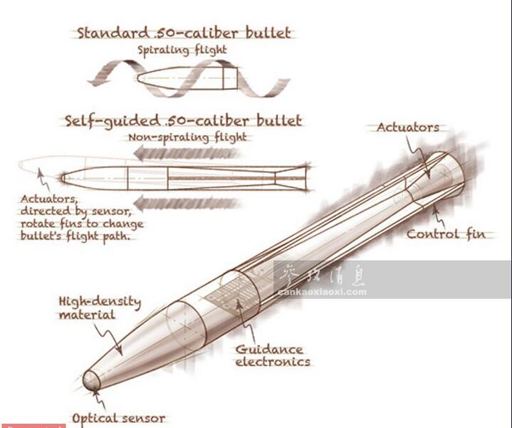 狙擊手在使用制導(dǎo)子彈時(shí),只要鎖定目標(biāo),不論朝哪個(gè)方向射擊,子彈后都能通過自主修正彈道命中目標(biāo)。這張手繪圖展示了制導(dǎo)子彈和傳統(tǒng)子彈之間的顯著區(qū)別,傳統(tǒng)子彈需要靠自旋穩(wěn)定彈道(上),制導(dǎo)子彈(下)無(wú)需自旋,直接靠尾部的彈翼就可改變飛行彈道。有人吐槽稱,配備這種子彈后,人人都能成為神槍手,或許狙擊手的時(shí)代就此結(jié)束了。吐槽歸吐槽,制導(dǎo)子彈的實(shí)戰(zhàn)效果仍需拭目以待。
