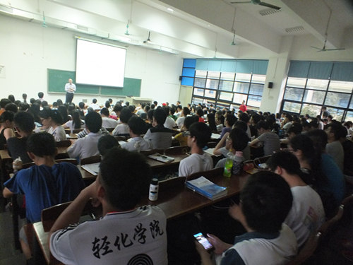 2016年4月26日晚,在大學(xué)城教五202教室,應(yīng)廣東工業(yè)大學(xué)輕工化工學(xué)院邀請,廣東省PCB行業(yè)協(xié)會會長辛勝先生以及副秘書長、廣東興達(dá)鴻業(yè)執(zhí)行副總裁沈方斌先生等一行四人作客由輕工化工學(xué)院承辦的學(xué)校124期就業(yè)講壇,并由沈方斌先生作了主題為“未來30年,你在走向成功的路上”的專題講座。輕工化工學(xué)院黨委蘇兆祥副書記、陳世榮老師(廣東省PCB行業(yè)協(xié)會副秘書長)、輔導(dǎo)員李韻捷老師以及兩百多名學(xué)生一同聆聽了講座。