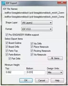 系統(tǒng)需要能夠以與 DXF 參數(shù)設置類似的方式,來控制 IDF 文件中將包含的內(nèi)容,如圖 6 中所示。如果某些元器件沒有高度信息,IDF 導出能夠在創(chuàng)建過程中添加缺少的信息。