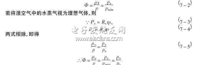 大氣中水蒸氣的數(shù)量,可在O與飽和狀態(tài)之間變動。絕對濕度只表示濕空氣中實(shí)際水蒸氣含量的多少,而不能說明在該狀態(tài)下濕空氣飽和的程度或吸收水蒸氣能力的大小。因此,常用相對濕度來表示濕空氣的潮濕的程度。相對濕度的定義是濕空氣的絕對濕度ρ與同溫度下飽和濕空氣的絕對濕度φ之比,用符號" 表示即可