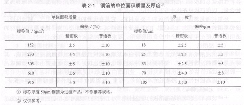 銅箔的表面應(yīng)光潔,不得有明顯的皺折、氧化斑、劃痕、麻點、凹坑和玷污。305g/m2及以上銅箔的孔隙率要求在300ram×300mm面積內(nèi)滲透點不超過8個;在0.5m2面積上銅箔的孔隙總面積不超過直徑為0.125mm的圓面積。305g/m2以下銅箔的孔隙率和孔尺寸由供需雙方商定。銅箔的單位面積重量及厚度應(yīng)符合表2.1規(guī)定。