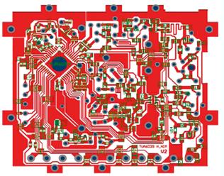 采用單層PCB設(shè)計ULC調(diào)諧器已廣為客戶接受。在競爭激烈的電視調(diào)諧器市場中,任何成本上的改進(jìn)都可能進(jìn)一步降低生產(chǎn)成本。因此,單層PCB與雙層PCB之間的任何成本差異對于調(diào)諧器的整體BOM(材料清單)來說都非常重要。圖2為終的PCB設(shè)計。該half NIM設(shè)計使用厚度1.6mm的單面FR4 PCB。
