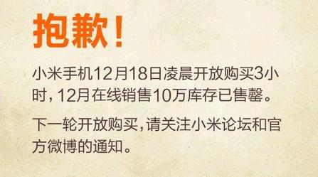 10萬臺1.5G雙核小米手機(jī)在三小時內(nèi)被粉絲全部“掃光”,平均每分鐘銷售出500多臺手機(jī)